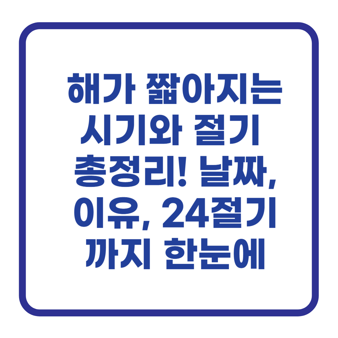 해가 짧아지는 절기와 관련해 기억해둘 24절기는 다음과 같습니다: